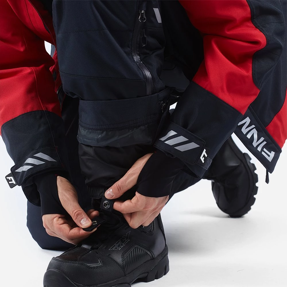 - Cнегозащитные гетры и петля с кнопкой по низу штанин для соединения с ботинком препятствуют попаданию снега внутрь обуви и комбинезона.